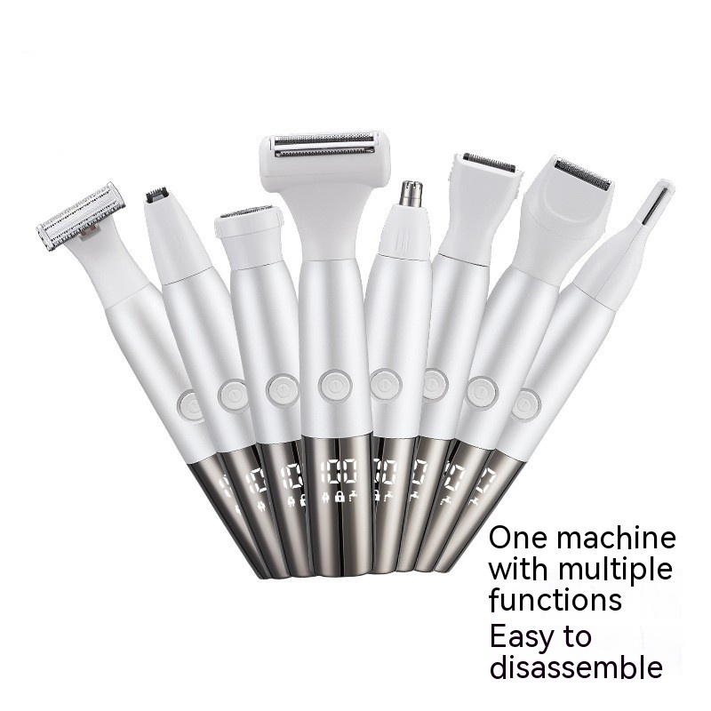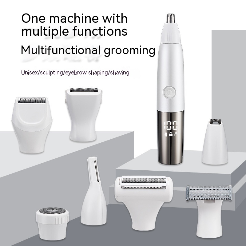 1 * Host (equipped with nose hair), 1 * Eyebrow trimming knife 1 * Engraving knife, 1 * Barber blade (including 1 limit comb, 3 adjustable sizes of 1MM, 2MM, and 3MM), 1 * Razor head, 1 * Round blade, 1 * Shaving curved blade head (including protective cover), 1 * Scraper (including protective cover, 3 limit combs, 2MM. 4MM. 6mm), 1 * Cleaning brush (white), 1 * USB cable, 1 * Neutral packaging, 1 * Instructions